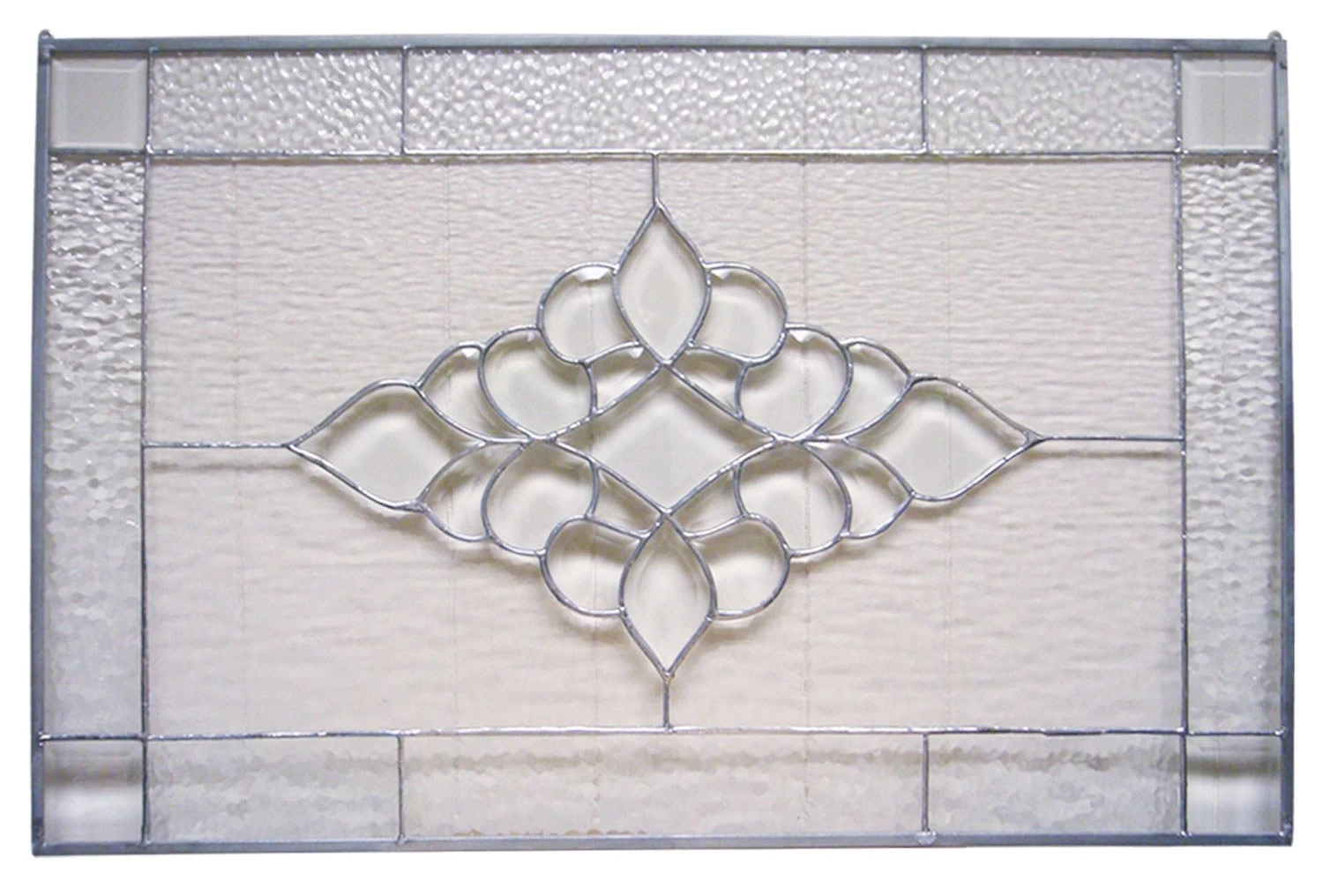 The slanted edges of bevels refract light into a rainbow of colors — both inside the glass, and onto your walls, floors and ceilings. Clear bevel cluster, measures 14-1/2″ wide by 20-3/4″ high when assembled. 21 pieces.