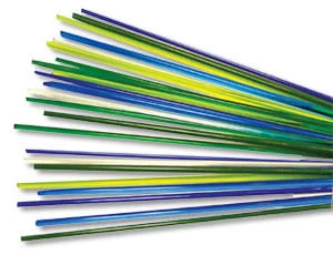 Italian rod assortments are a wonderful convenience. Make an entire necklace or bracelet with just one bundle! The coordinating colors are all easy-to-use opaque and transparent rods. Assortment includes twenty-four 13″ rods — 4 clear and a mix of 20 blues, greens, and aquas. 104 COE. A Delphi Exclusive.