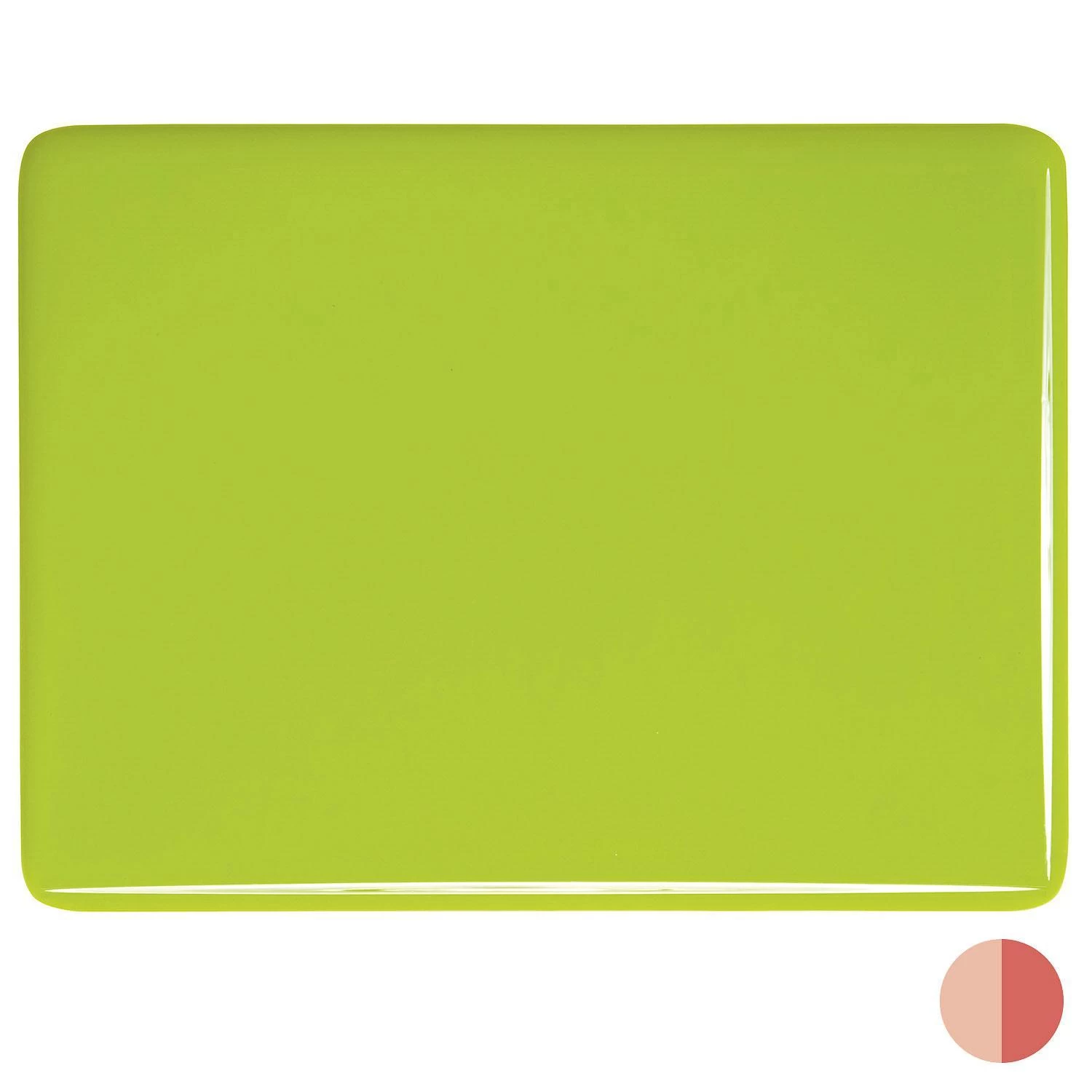 Bullseye Spring Green Striker Opal is a Sulphur/Selenium bearing glass and may react with glass that contains copper or lead. The Standard thickness is 3 mm. 90 COE.Â