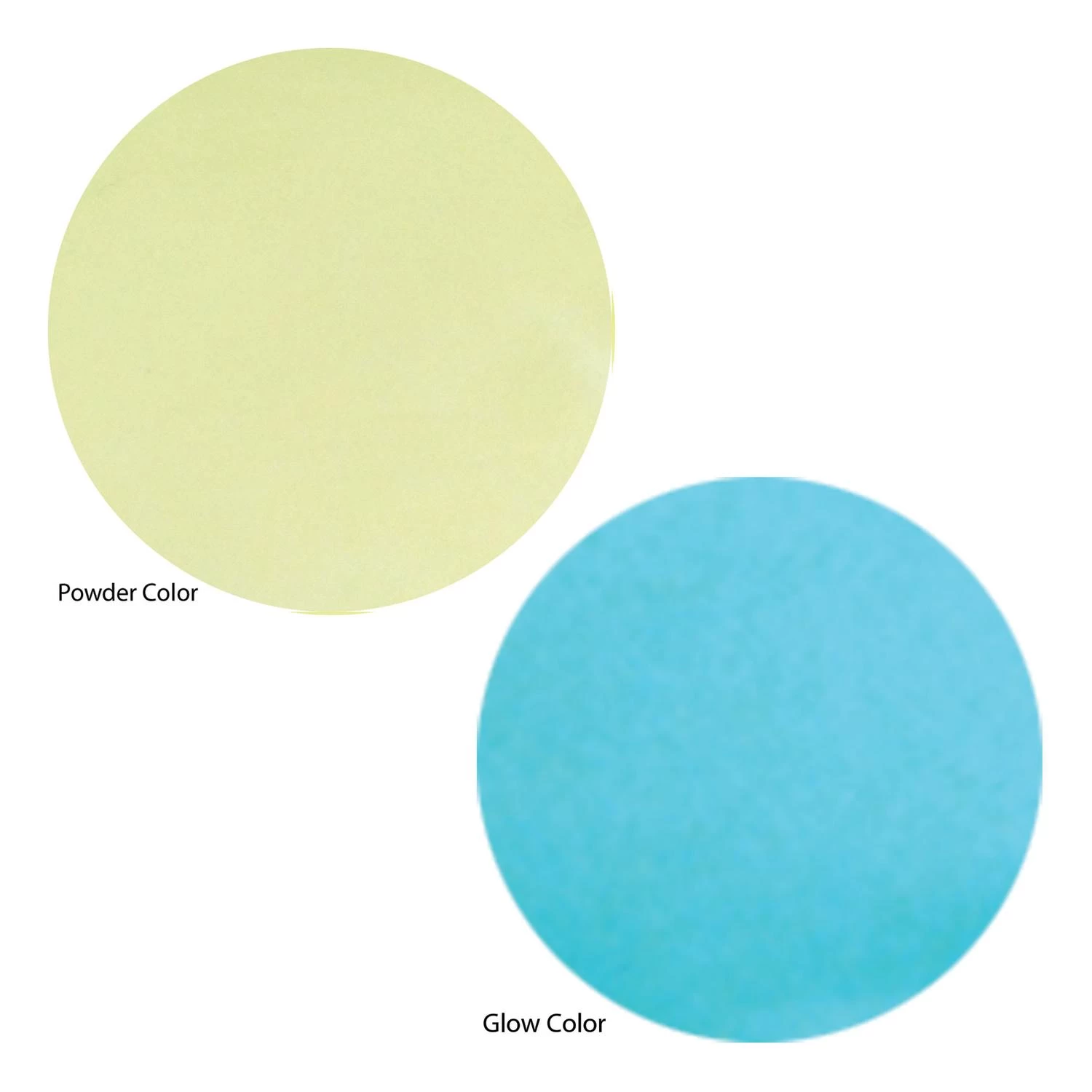 A single minute of light exposure will provide subtle luminescence for a short time. For longer glow times and brighter illumination expose to sunlight. Exact glow times may vary depending on multiple factors, including light exposure time, quality of light used for exposure (full-spectrum daylight is best), and ratio of pigment used in your project. Glow powder is safe to use: non-toxic, non-carcinogenic, non-flammable, non-radioactive and non-hazardous. 1 ounce. Aqua glow pigment appears pale yellow but creates vibrant aqua glow.