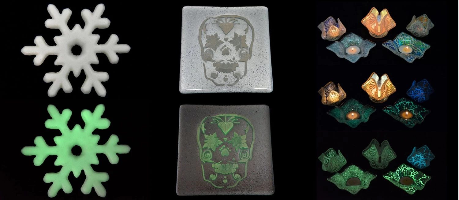 Trick of the Trade: Glow pigment must be capped or encased inside glass layers. Do not exceed 1800 degrees. Always keep dry.