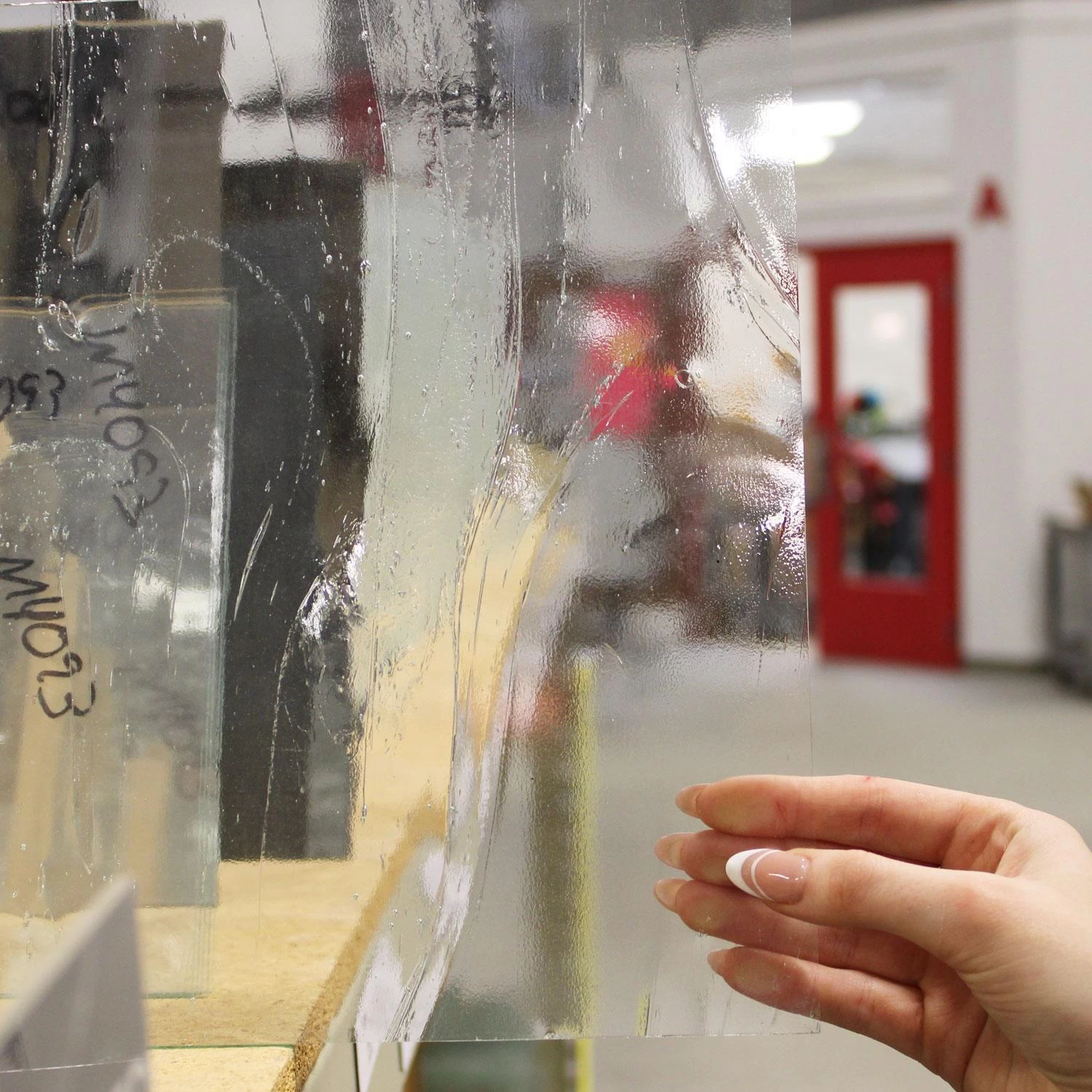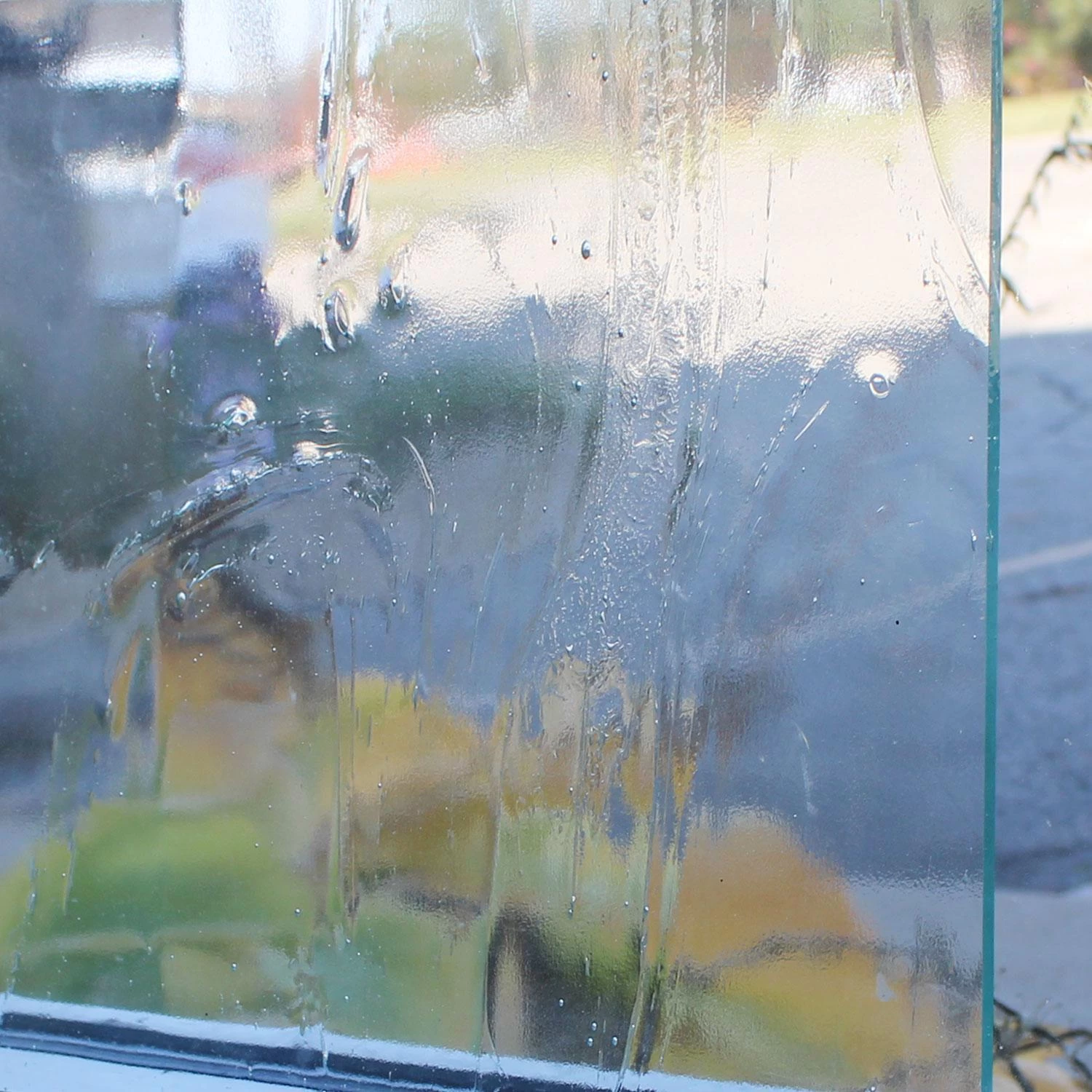 This clear glass has a frozen motion look along with some air bubbles, giving it a Reamy or swirl appearance. This easy cutting glass is both affordable and perfect for backgrounds. Glacier Glass is 4mm (5/32″) thick with one smooth side. Feel free to call us to check stock.