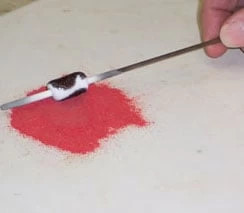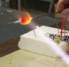 | Â 1. Place a small amount of enamel on a graphite pad or other heat resistant work surface. | Â 2. Gently roll the hot bead over enamel for desired effect. | Â 3. Return the bead to the flame and heat bead evenly. |