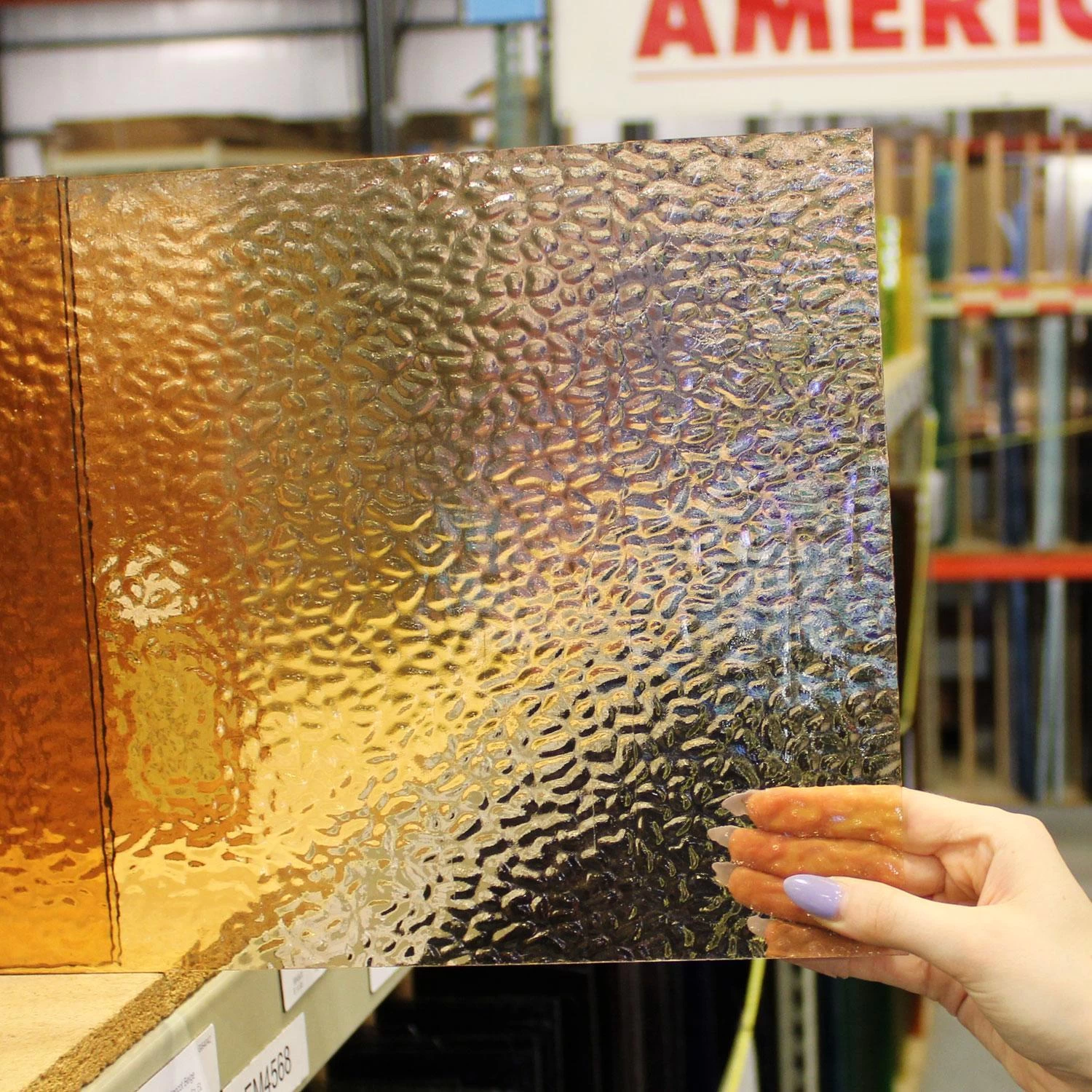 Often used in Victorian designs, English Muffle texture glass is suitable for a variety of styles. This easy-cutting, machine rolled glass features traditional colors, highly refractive texture and crystalline quality. The multidirectional texture allows minimum waste. Glass pieces may include factory rolled edges.