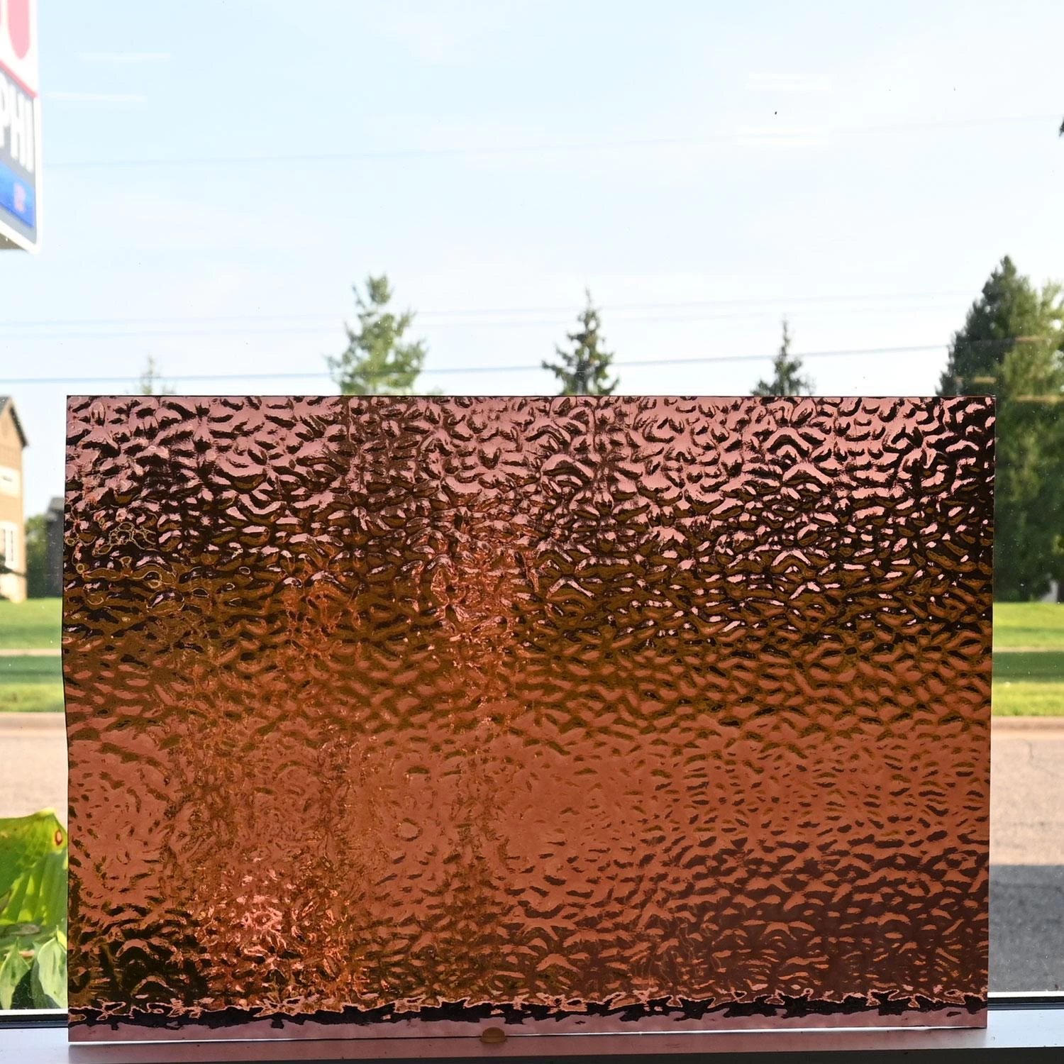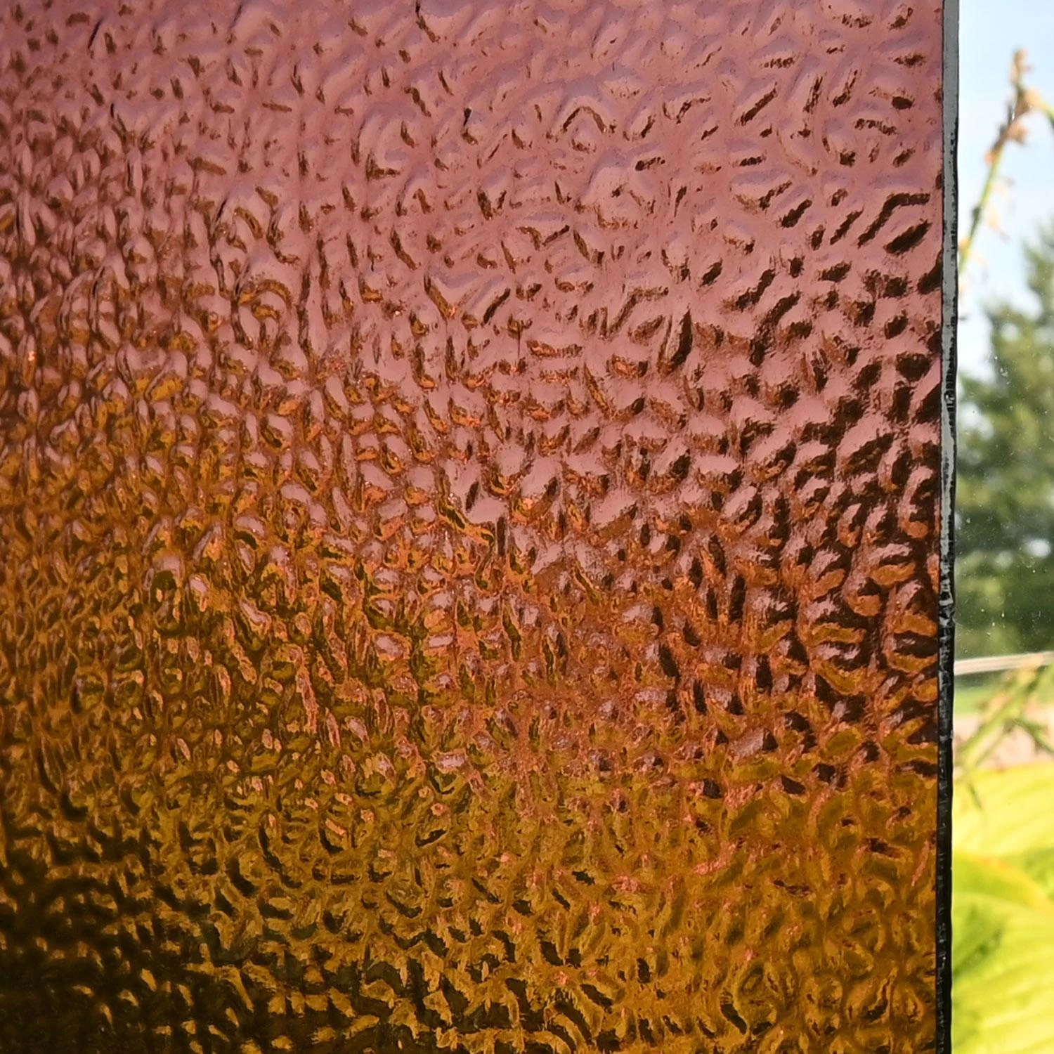 Originally popular in Victorian windows, English Muffle glass is now being reintroduced in both restoration and new work. This glass is known for its traditional muted colors, highly refractive texture and crystalline quality. The multidirectional texture allows minimum waste. Glass pieces may include factory rolled edges.