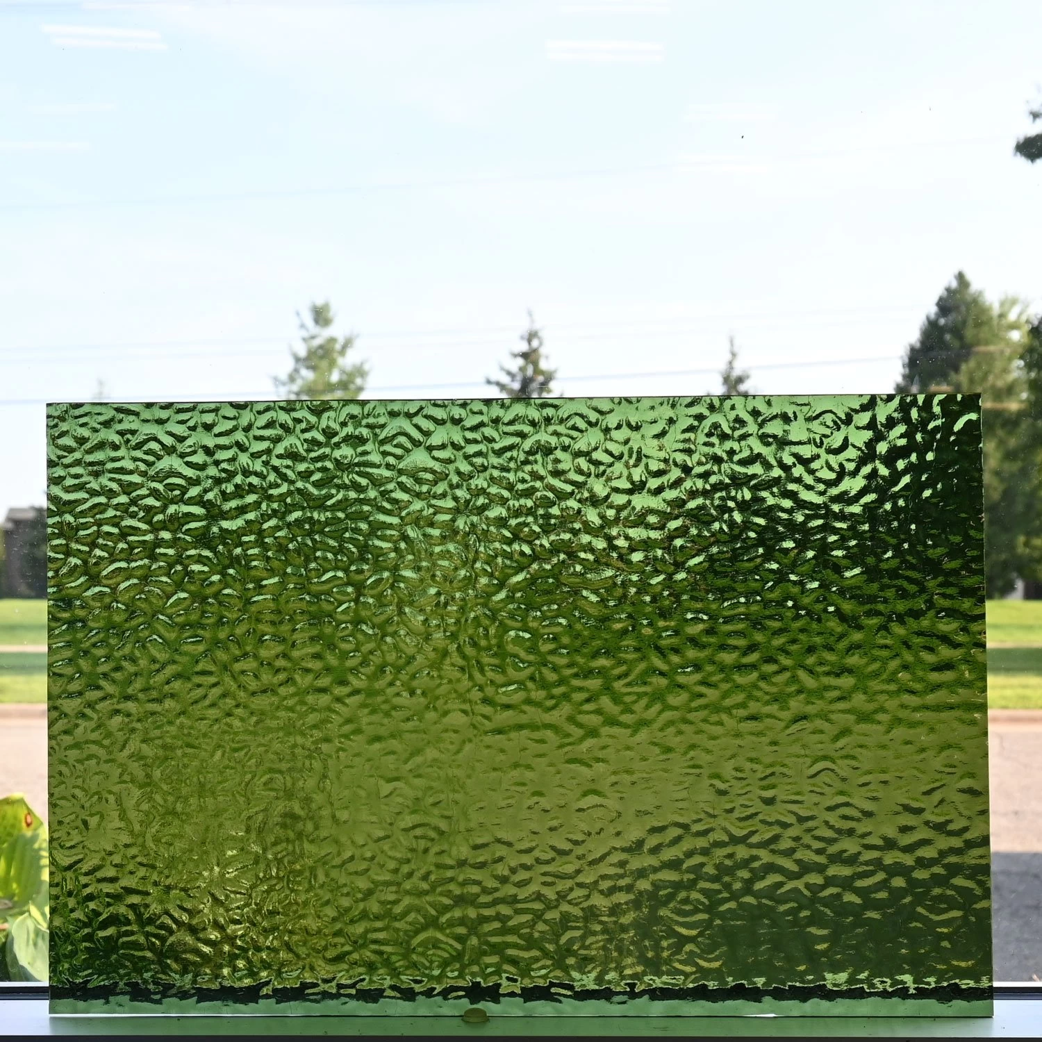 Often used in Victorian designs, English Muffle texture glass is suitable for a variety of styles. This easy-cutting, machine rolled glass features traditional colors, highly refractive texture and crystalline quality. The multidirectional texture allows minimum waste. Wissmach glass often has rounded corners as shown in additional images. Glass pieces may include factory rolled edges.