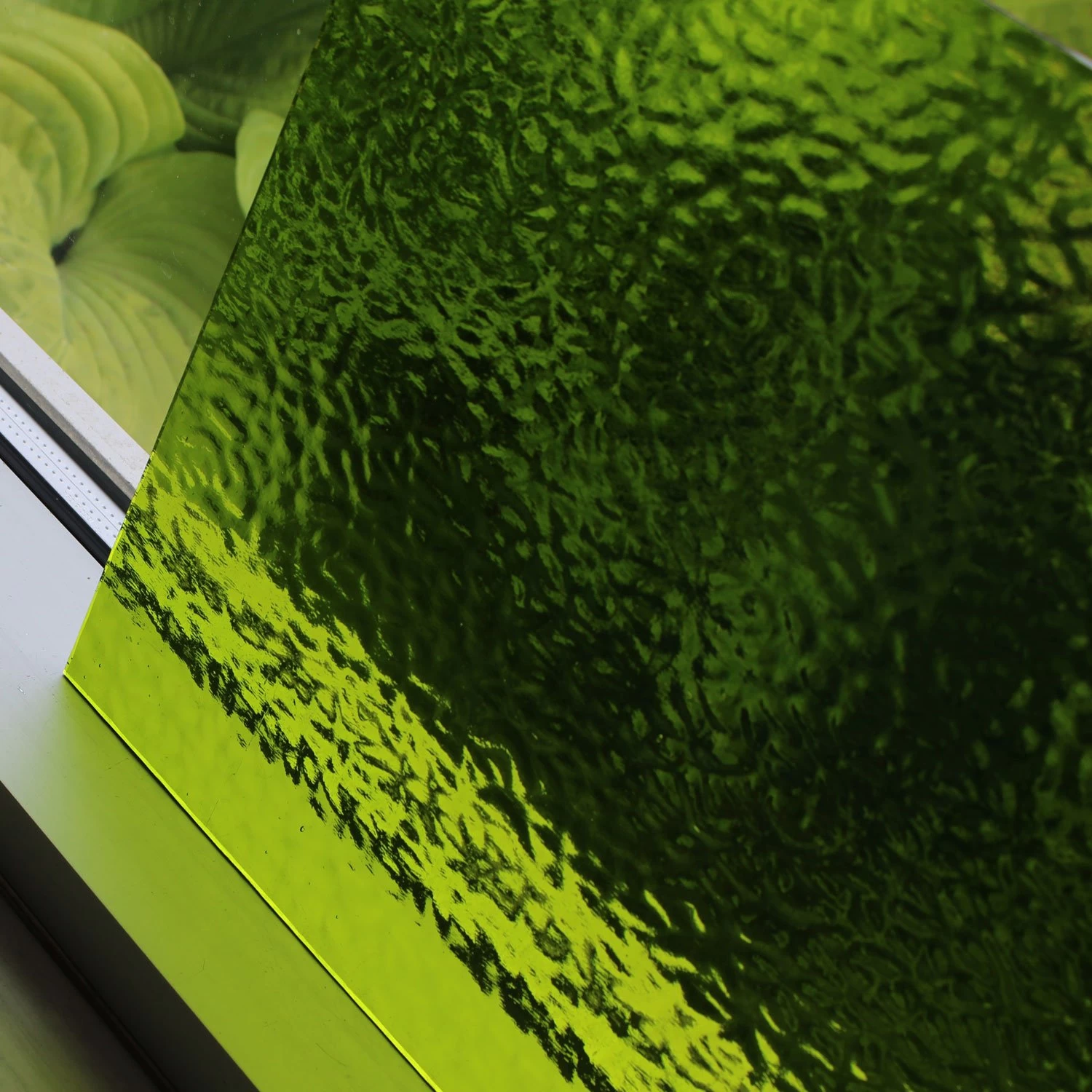 Often used in Victorian designs, English Muffle texture glass is suitable for a variety of styles. This easy-cutting, machine rolled glass features traditional colors, highly refractive texture and crystalline quality. The multidirectional texture allows minimum waste. Glass pieces may include factory rolled edges.