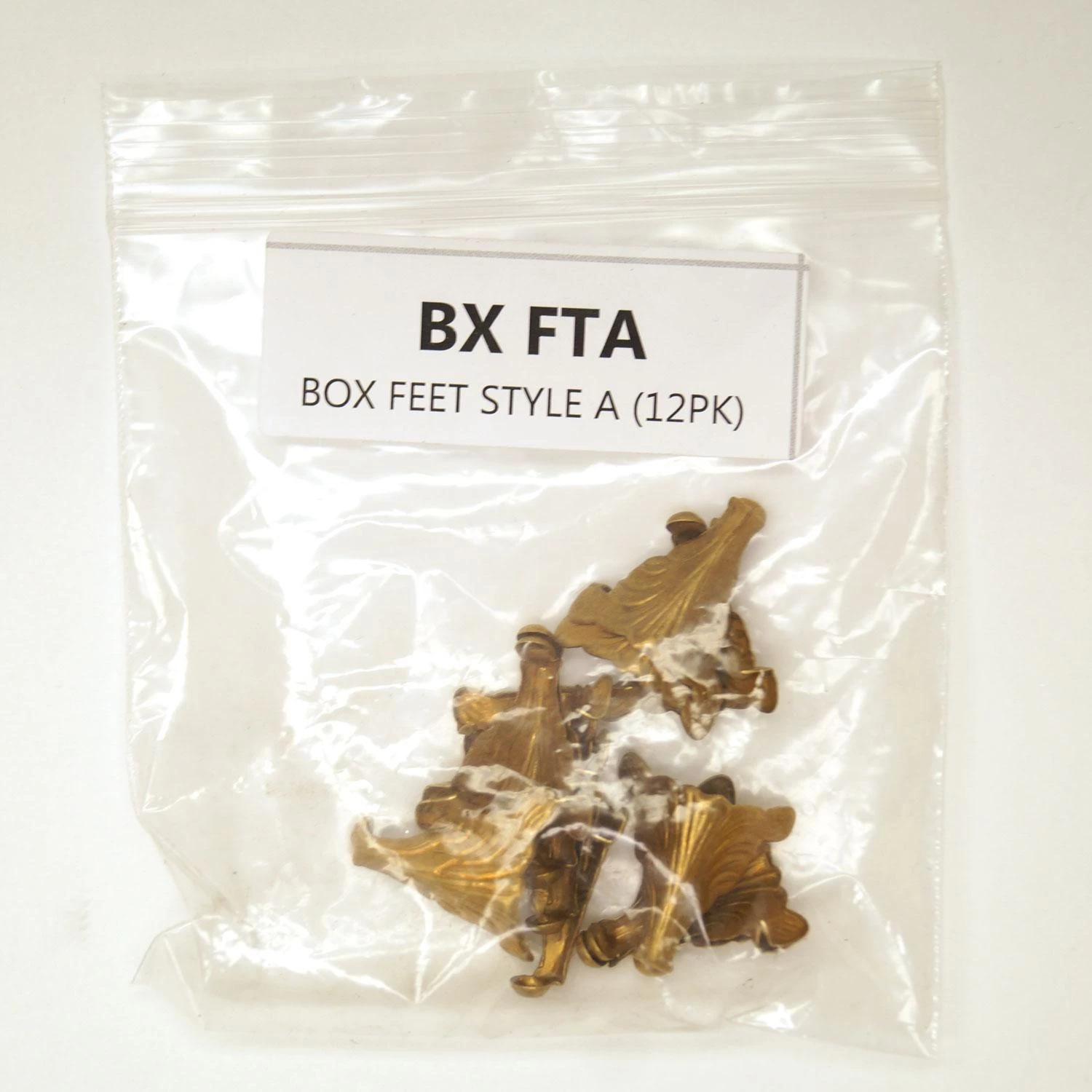 Pre-formed brass feet add the perfect finishing touch to your stained glass box. Fancy box feet feature a delicately embossed texture. Feet are angled at 90º, simply solder in each corner and finish as desired. Feet measure approximately 1-1/4″ x 1″. Sold in packs of 12, enough for 3 boxes!
