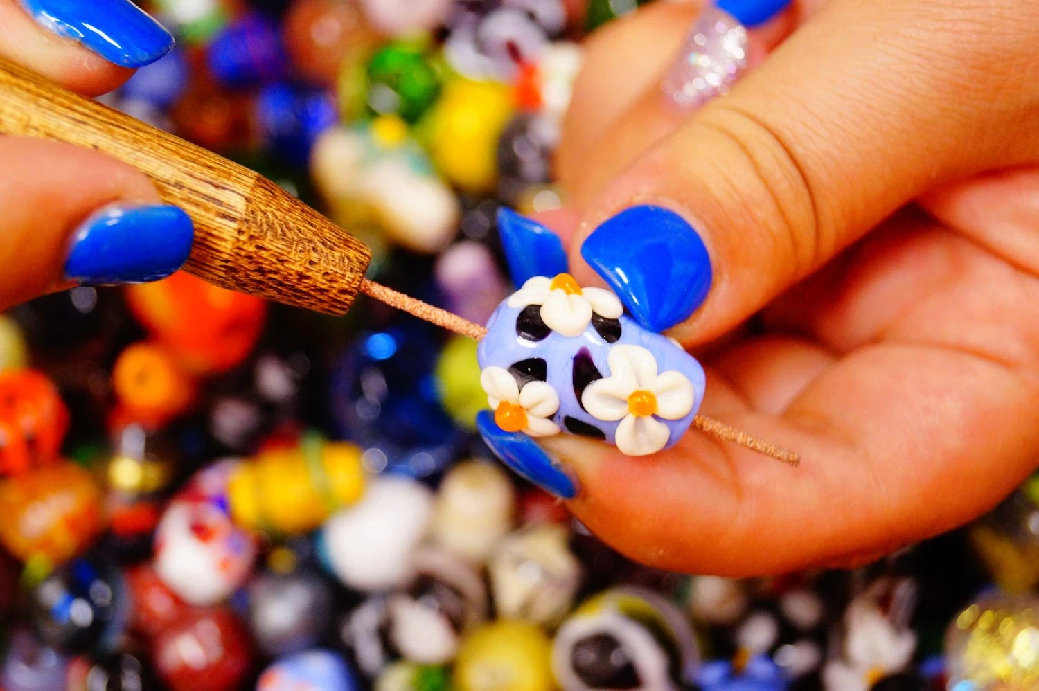 The Fireworks Bead Hole Cleaner is coated with the finest diamond abrasive for a more effective and efficient removal of bead release residue. To use, simply push the narrow diamond coated rod back and forth through the hole in your bead. Measures 5-5/8″ long overall, tip measures 2″ long.