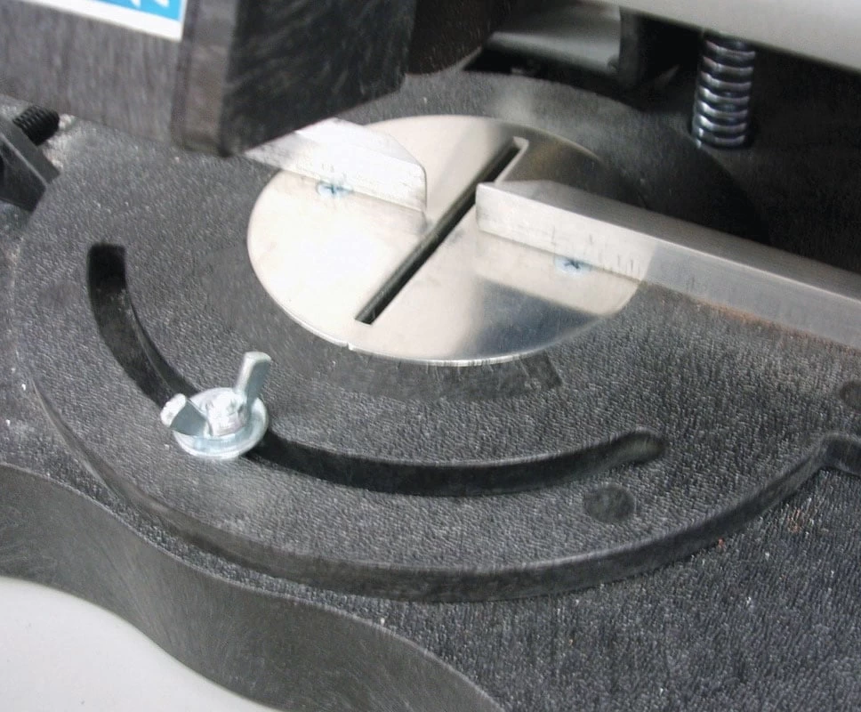 - Thumbscrew clamp holds work securely to the fence while cutting