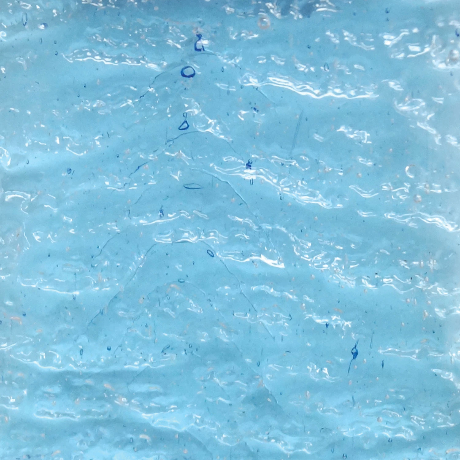 Main glass swatch is a 2″ square to better show detail. Second image shows glass black lit.