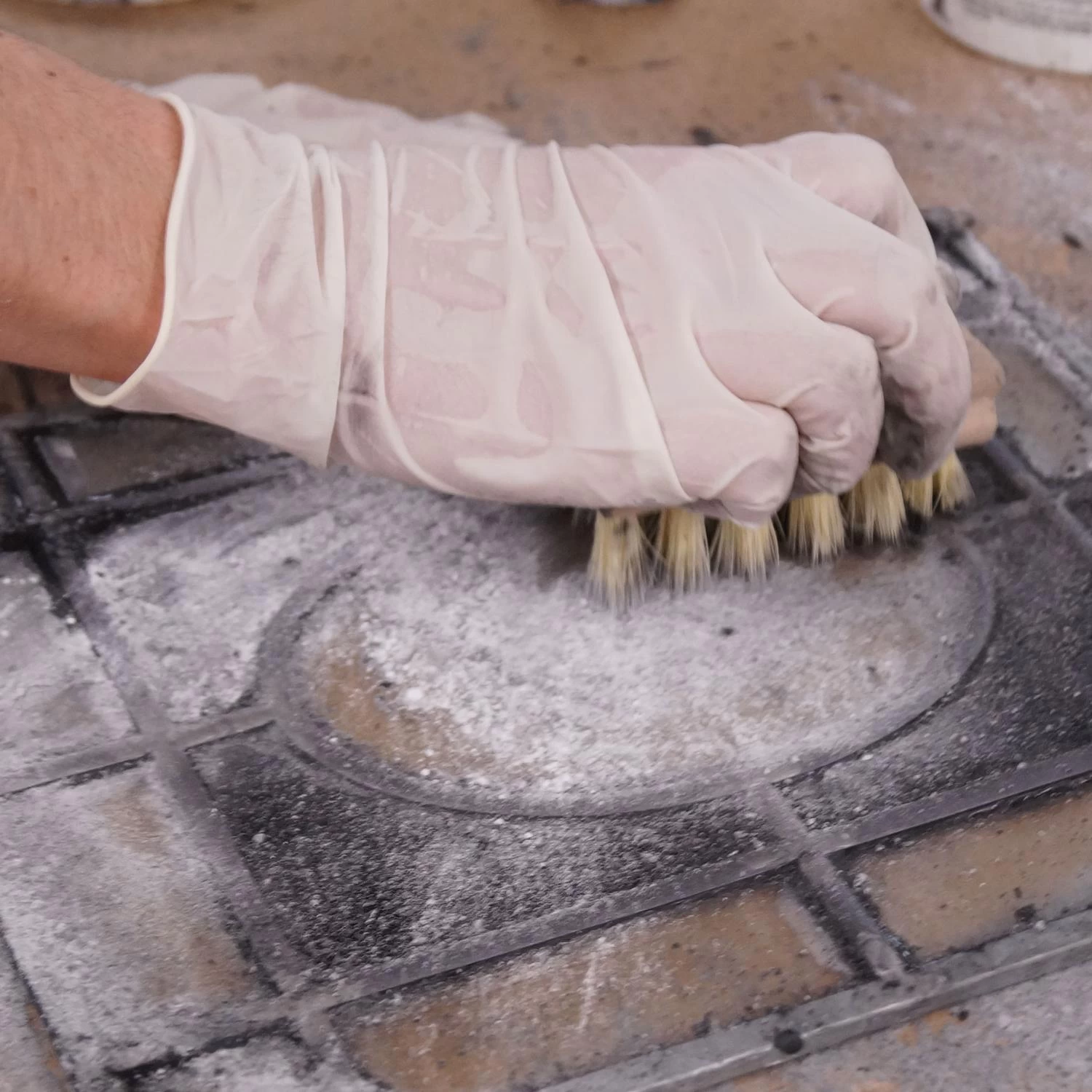 Delphi Tip: Cut the scrub brush in half, allowing one half to be used strictly for putty and the other for whiting powder.