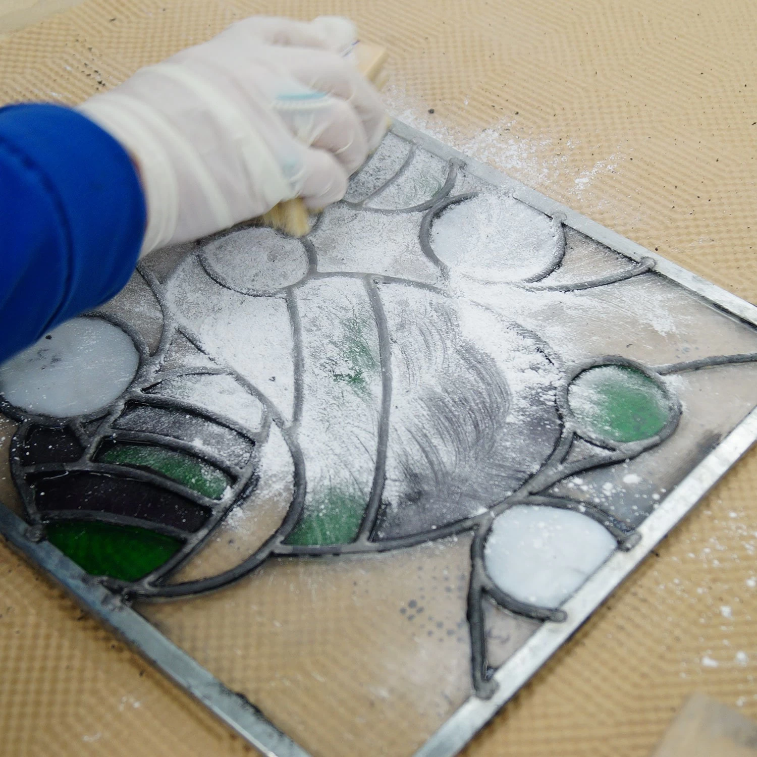Black putty will give your projects a lovely antiqued finish right away while securing glass and adding support to your leaded glass projects. Use Whiting Powder to help set up the putty. This also cleans up additional putty in one easy step. If you are left with any excess putty in hard to reach places, use the point of the hook on the fid to help. Its small size makes it indispensable in stained glass work. The included D-Lead hand soap is ideal for cleaning your hands when you’re done.