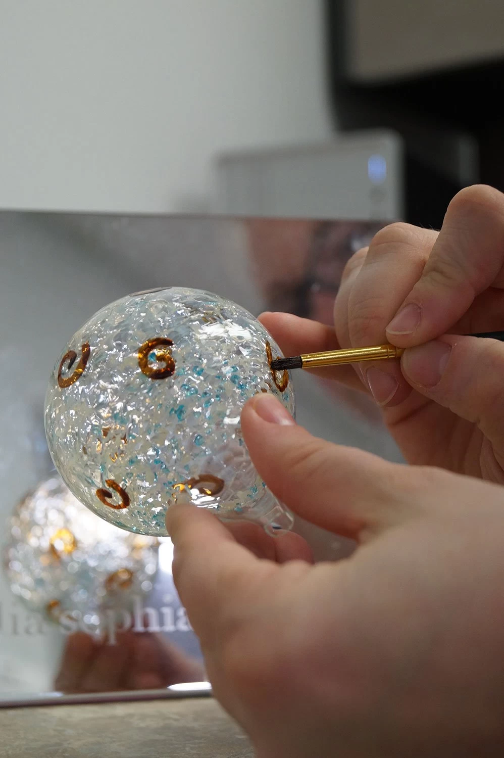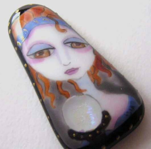 Projects are an example of detail drawings fired on glass. Fish Bowl by “Creative Designing: Innovative Glass Art.” Necklace by Dianna Effner Porcelain Dolls, Inc. Hand painted bead by artist Brenda Miller. From Delphi’s Online Artist Gallery.