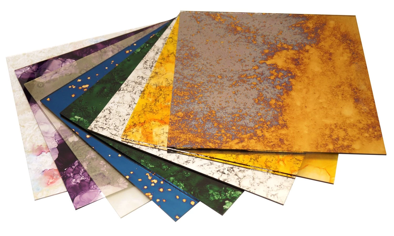Color designs are applied to glass surface and withstand normal handling, cutting and nipping. Due to the nature of this glass you must cut on the matte/coated side. If scored on the opposite side, the glass will not break. For best results, do not submerge or use harsh chemicals on glass surface. To remove pattern marking use rubbing alcohol to remove. This will not harm the coating. Exact color, pattern and designs vary in this exciting glass. Piece sizes are approximate.