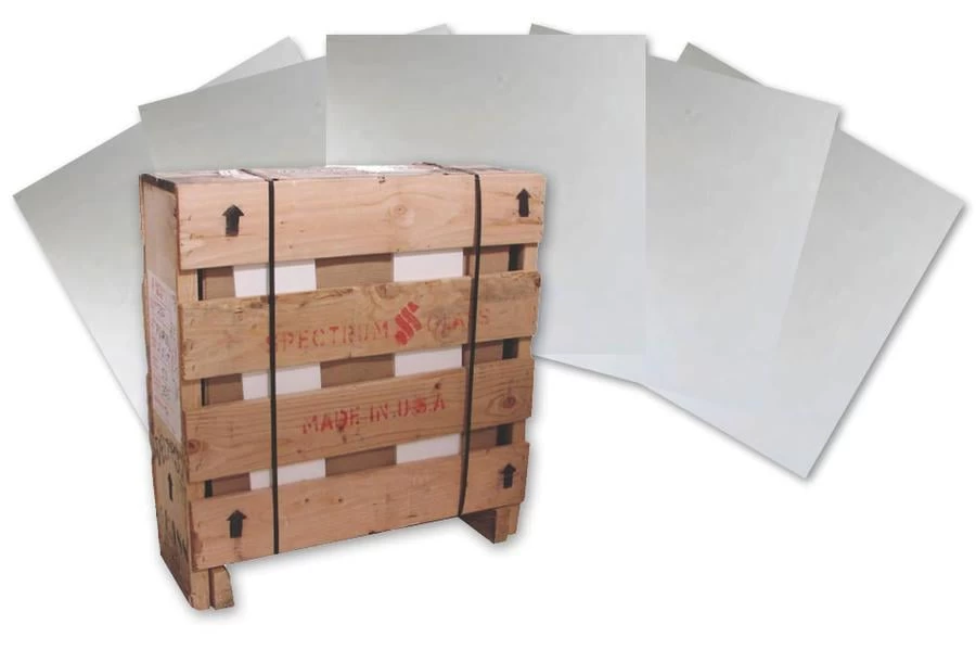 The same quality Oceanside 96 COE sheet glass you’ve come to know and love is now available in a full factory case. Icicle clear glass has stunning clarity, making this glass an excellent choice for the base or top layer of your glass work. This glass is made for fusing, with a 96 COE. Slump it alone, or easily fuse it with other colors of 96 COE glass. Crate contains 200 sf – 50 sheets each measuring 24″ x 24″.