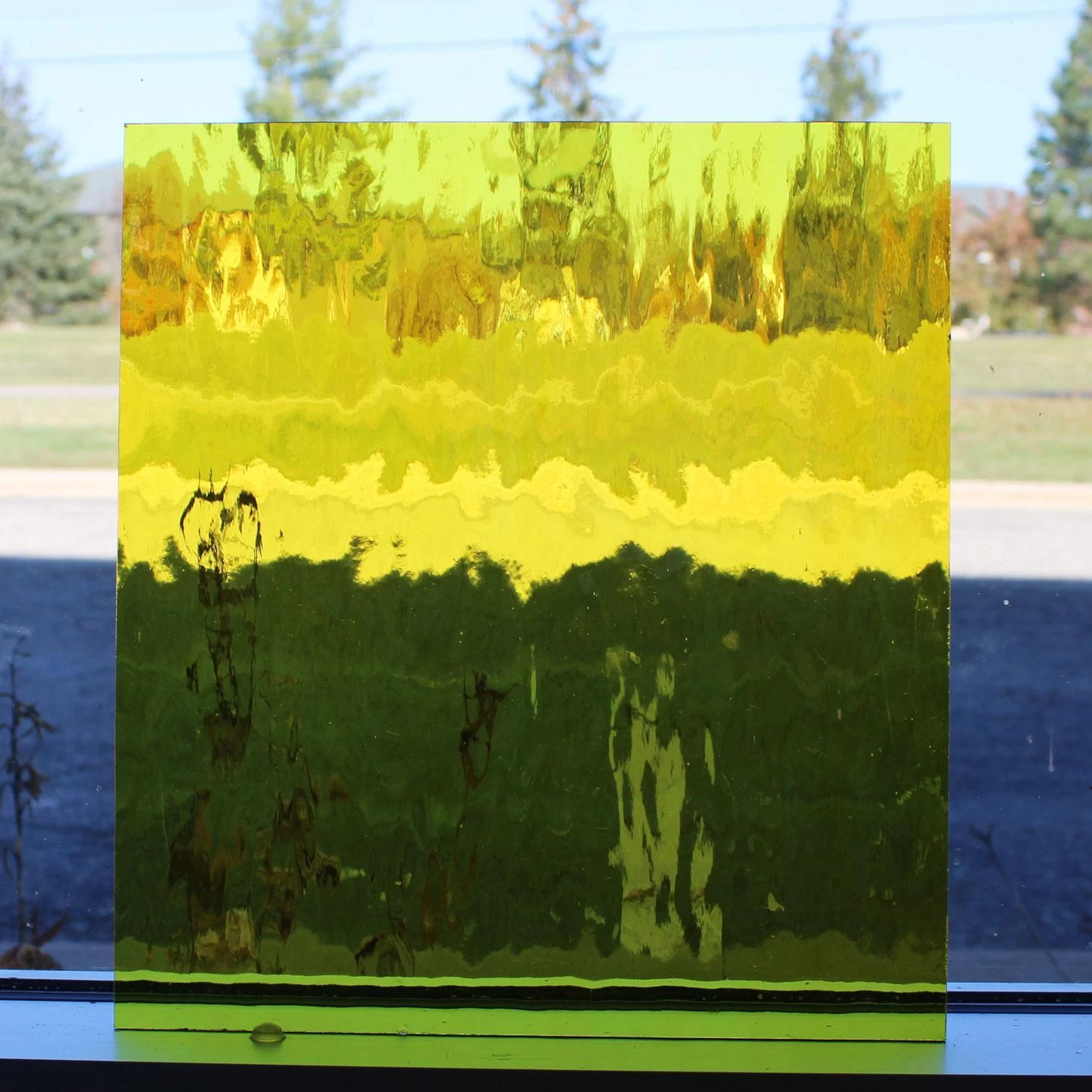 Oceanside Waterglass is a natural surface texture created by stretching the hot glass sheet while it is still in a pliable state. The result is gentle, rolling waves that resemble the surface of a lake or stream. Ideal for backgrounds, water and sky scenes. This favorite texture is now fusible. 96 COE.