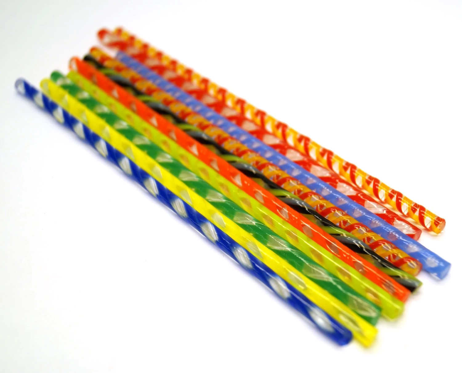 - Each hand-pulled 5″ cane is 4 – 7 mm in diameter