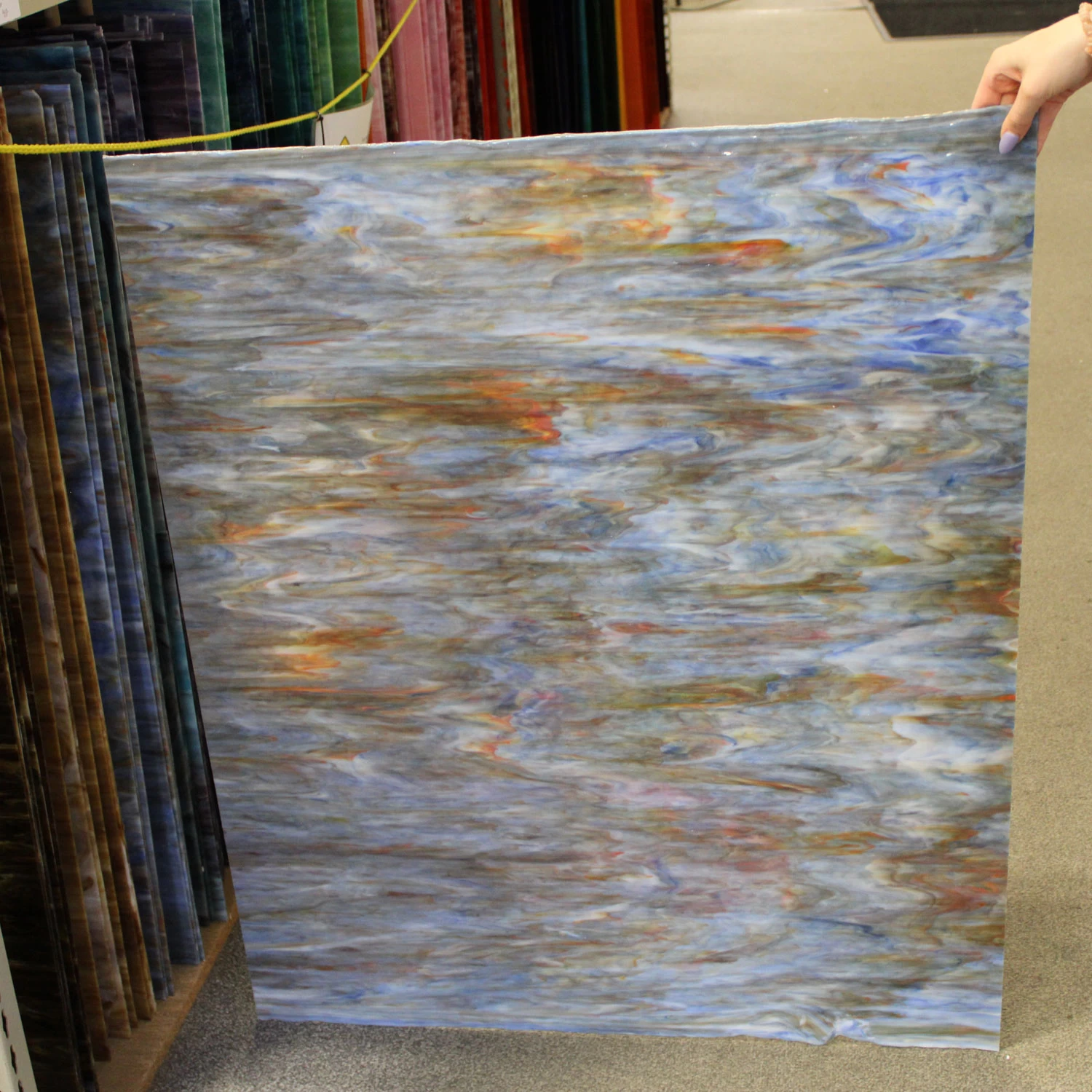 Create stunning stained glass and mosaic projects with the beautiful Tiffany Today line. This glass features rich colors and a consistent texture. Perfect for beginners and professionals alike. Glass is opaque with a mix of colors to create a unique, vibrant, streaky color effect.