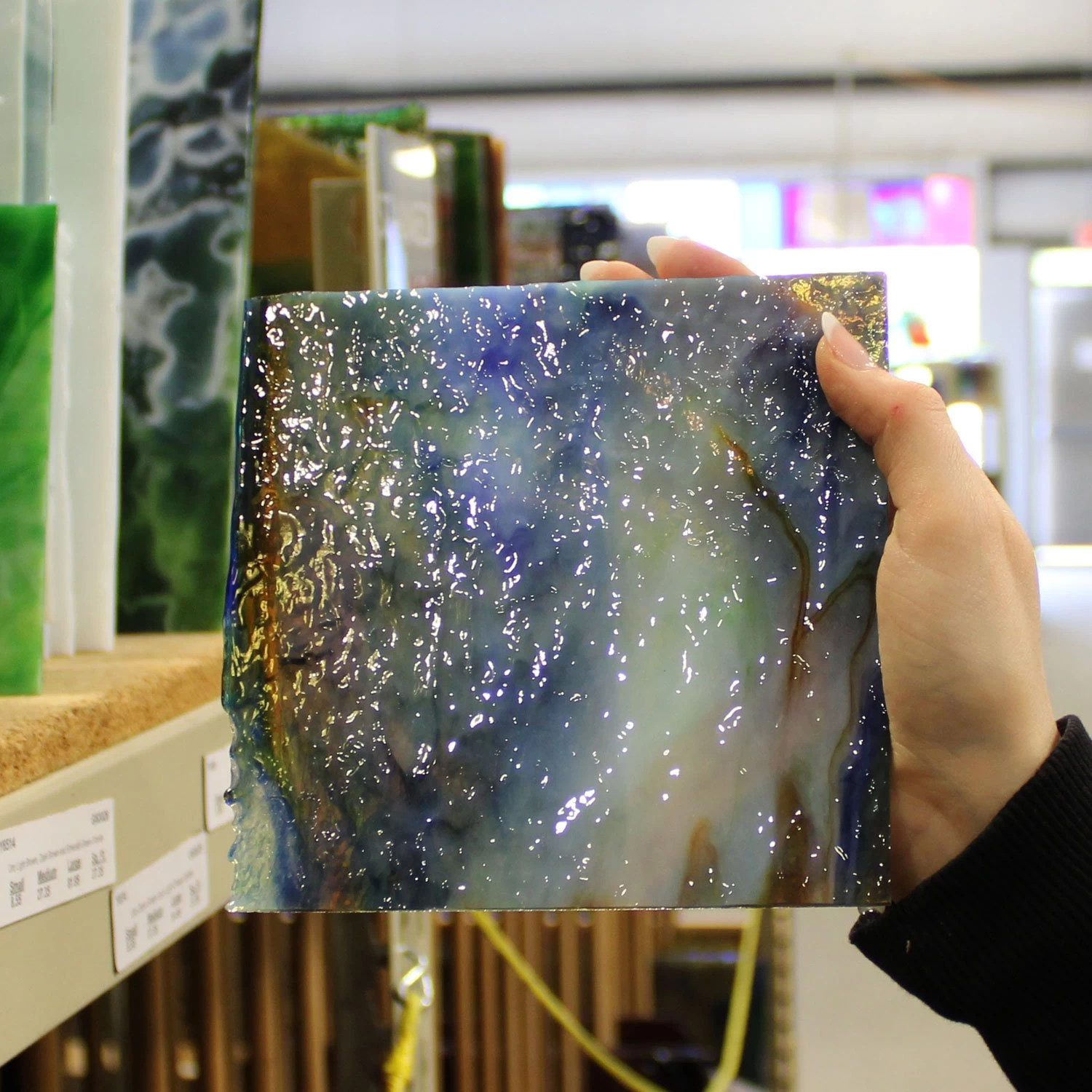 Multi-color glass features a granite texture. This texture adds depth and complexity to projects making it a popular choice.Â