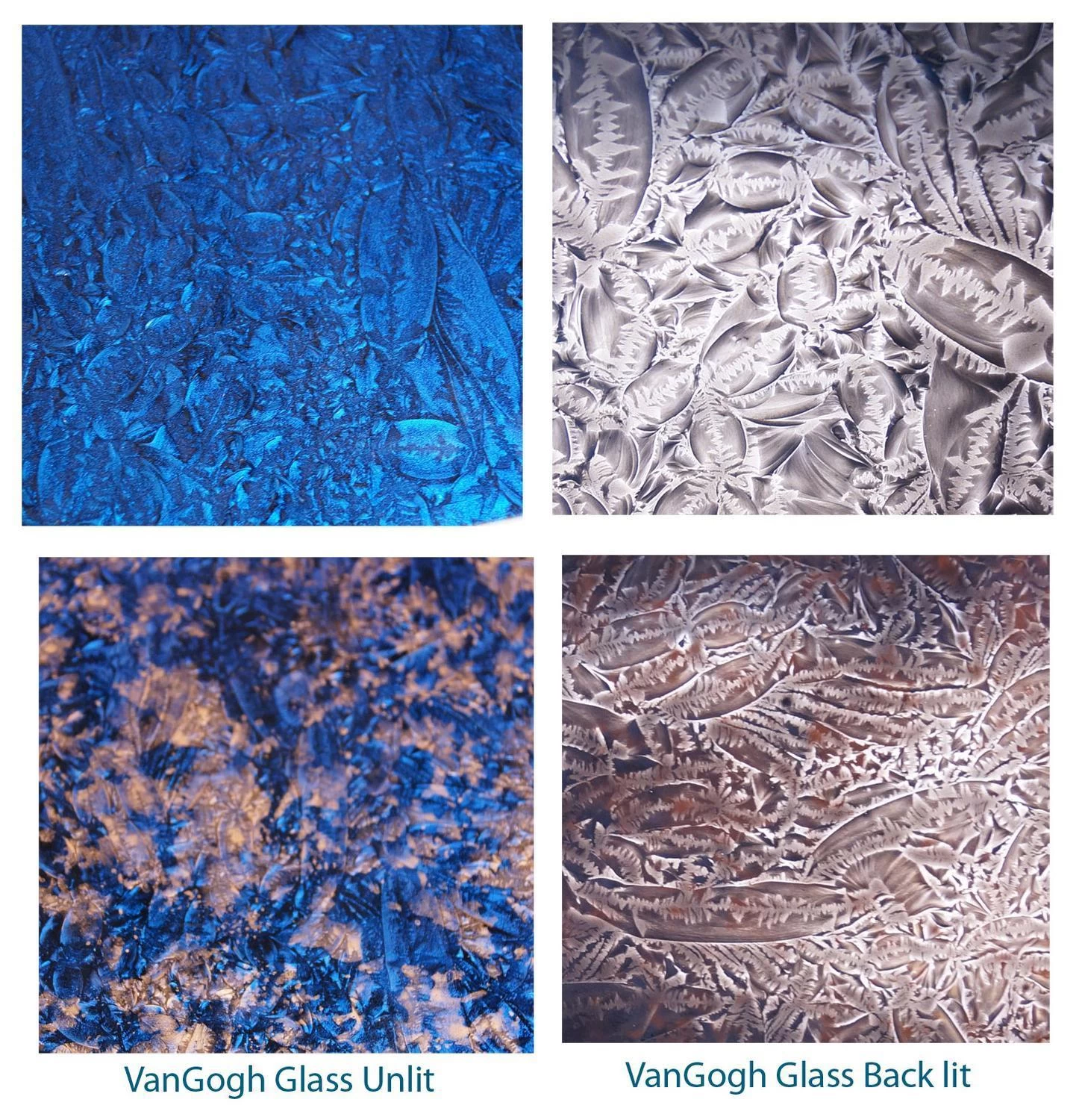 Technical Information: Van Gogh glass is for use in stained glass and mosaics. Not recommended for backlit projects such as lamps and windows. Glass is not for use in kilns because it is both painted and silvered. Do not submerge or use harsh cleaners as it will damage the colored coating. Be mindful while grinding as a coarse bit may chip the backing. For best results use a fine grit grinder bit and gentle pressure. Mirror sealant can be applied to help protect the coating.