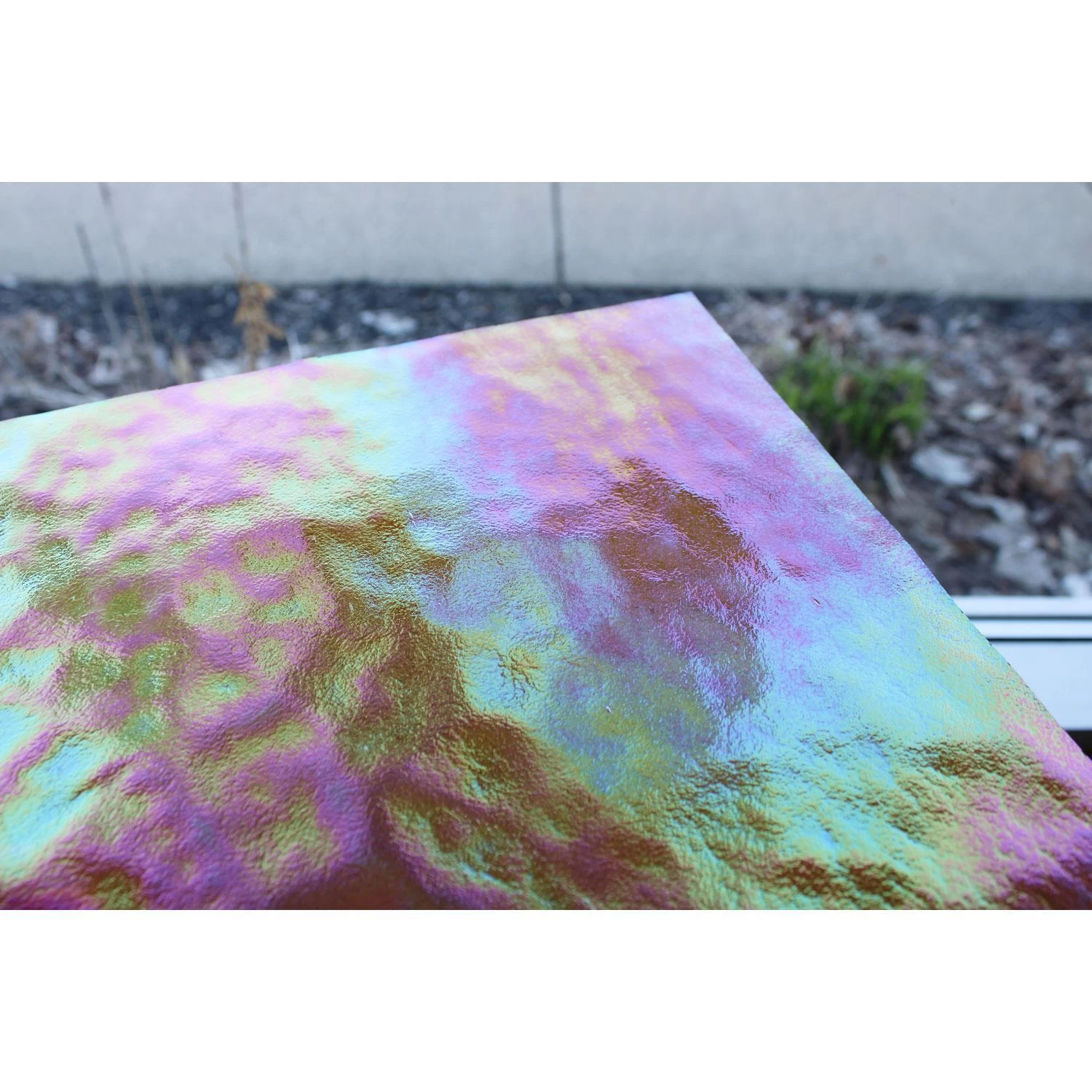 Add an extra dimension of beauty to your art. This iridized glass gives off a rainbow of colors! Great for accents or backgrounds.
